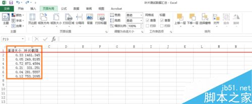 1、下图为我们要插入图表的数据,湍流值作为横坐标,载荷值作为纵坐标