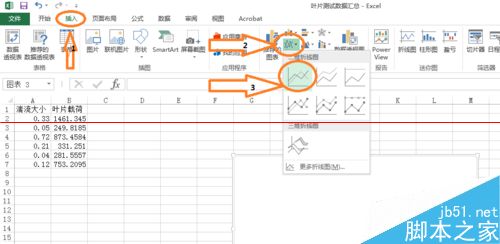 2、按照图片中的顺序,依次点击插入-折线图-选择折线图样式,本人习惯用第一个,可以在以后的工作中选择自己喜欢的格式