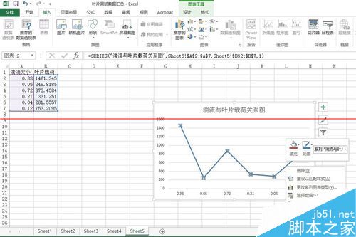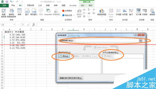 4、点击“添加”跳出系列名称和选择数据对话框,在系列名称输入你想要的名字,例如“湍流与叶片载荷关系”,数据我们选择“叶片载荷列",此为Y轴数值
