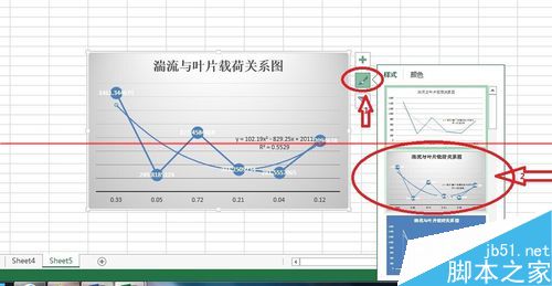 9、我们向下拖拽,点选显示公式,在图表中,会显示趋势公式