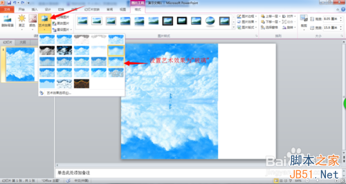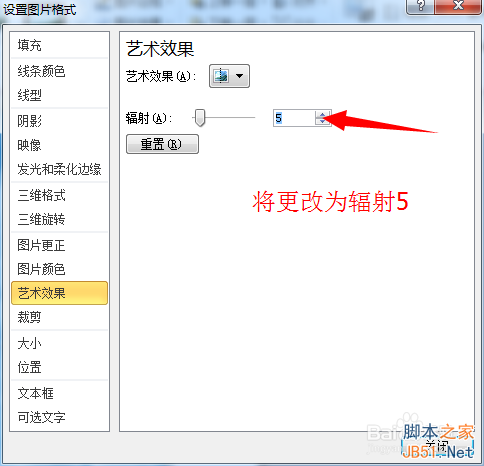 “设置图片格式中”将艺术效果的辐射改为“5”。