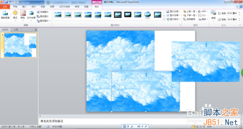 在新建的PPT中插入图片,并且复制一张,做成如图所示的镜面对称。