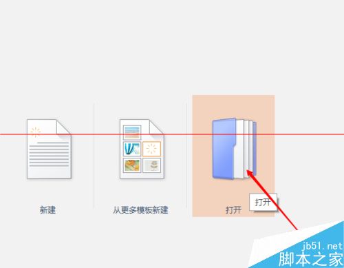 3、接下来出现“新建”“从更多模板新建”和“打开”,选择打开。