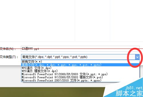 4、然后找到你要修改格式的PPT。在下面可以看到“文件类型”可选框; 点对勾就会出现格式类型选择了,然后保存自己喜欢的格式类型。