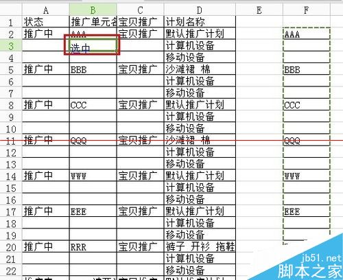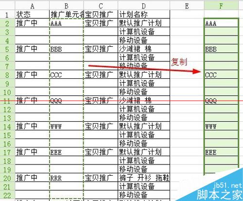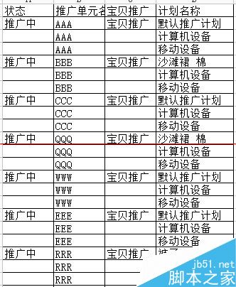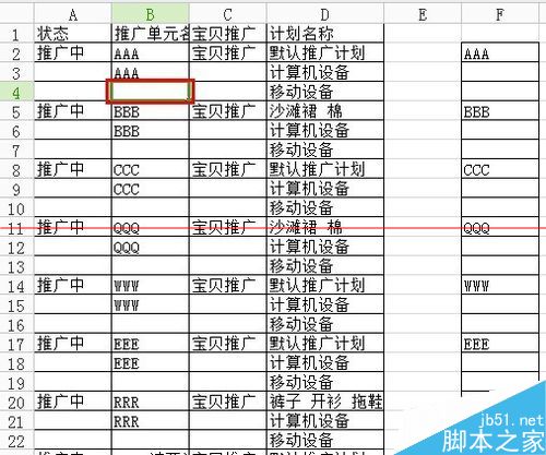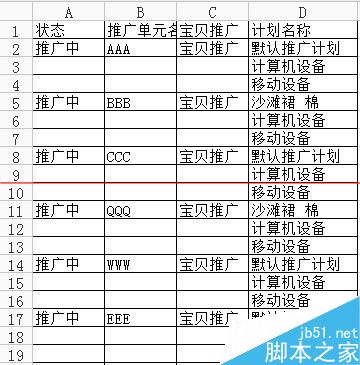 2、效果是这样的,就是把AAA、BBB这些都填充了下面2行