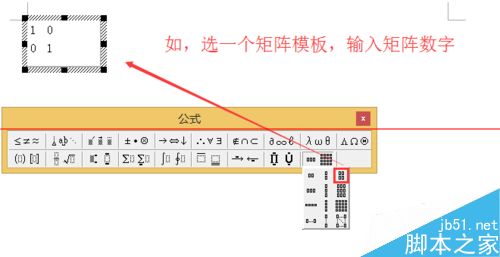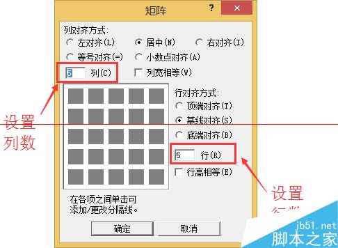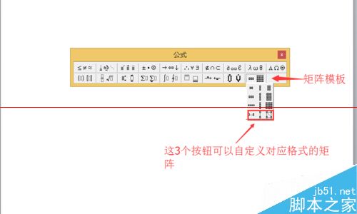 3、自定义矩阵可以设置行数、列数。公式编辑器上有自定义快捷”一行“或”一列“的矩阵,点击即可快速创建。