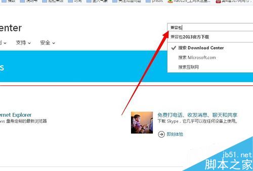 3、在出现的页面中的搜索框中搜索兼容包 可能不能立刻出现光标 这里加载的比较慢 需要等片刻 然后回车 如下图所示