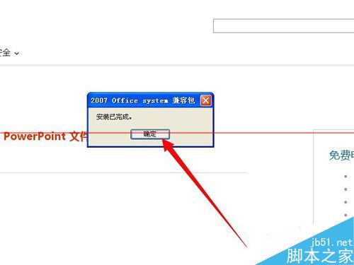 10、提示安装完成 然后点按确认 这时候我们就可以用excel2003打开更高版本的文件了