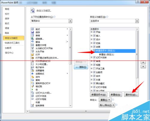 2、在弹出的窗口中选择“自定义功能区”,然后再选择“新建选项卡”。