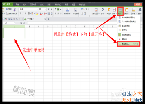 再单击"格式→单元格“命令。