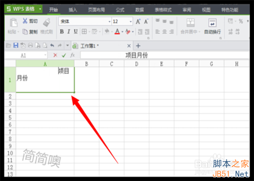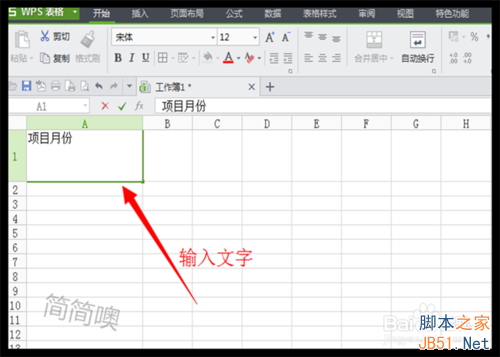 接下来在单元格里面输入表头里需要的文字这时,比如项目、月份;