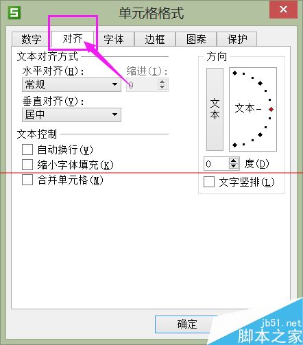 5、在弹出的[单元格格式]对话框中选择[对齐]标签,如下图所示: