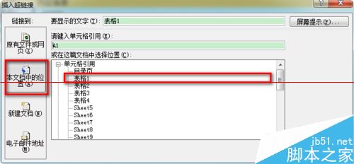 6、在弹出的窗口左侧选择“本文档中的位置”,右侧选择具体链接的页面。点确定,这样一个超链接就做好了。