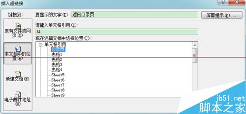 9、同样使用上述添加超链接的方法,为“返回目录页”添加链接,链接的目标为目录页。这样点击“返回目录页”就可以快捷的返回了。同样在每一页中加上这个链接,就实现了页面的便捷管理。