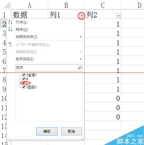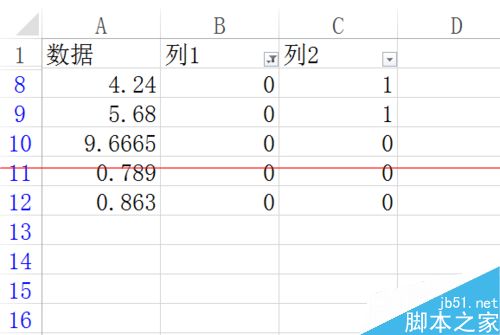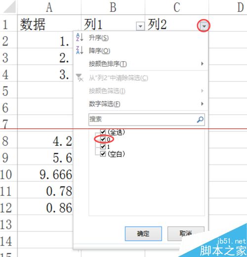 列1 筛选 取消显示1——不显示:没有小数点,1位小数点