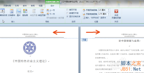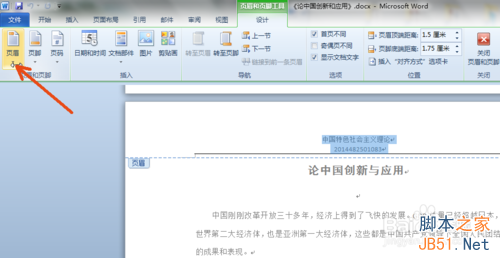 2、标题栏出现页眉设置窗口