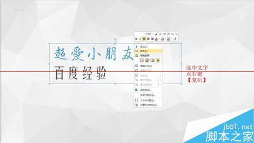 2、选中文字层,然后右键单击,选择【复制】。或者CTRL+C也是可以的。