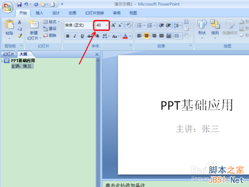 同第4步,为了保持协调,再调整“主讲:张三”字号为“40”。