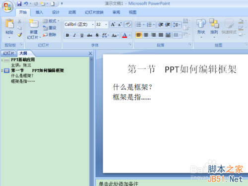 以上就是PPT2007版在大纲模式下编辑框架文字图文教程,希望能对大家有所帮助!
