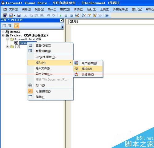 1、打开Word文件的 VBA编辑器,快捷键 Alt+F11,右击【ThisDocument】-> 【插入模块】