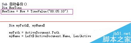 4、默认自动备份时间为5min,如要调整请修改【模块1】中一句代码:如图中红框所示: