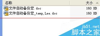 6、默认备份文件名为:【原文件名_temp,Lee.doc】且为只读,提示对话框2s后自动关闭。备份效果显示如下: