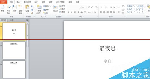 4、可在幻灯片里输入内容,这里仅以李白静夜思诗词为例