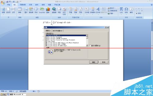 1、首先,打开word,选择插入—对象—对象(J),会弹出一个对话框,在新建这一选项卡下选择对象类型为“A Equation(公式3.1)”,点击确定后就会出现一个编辑框和名为“公式”的工具条。