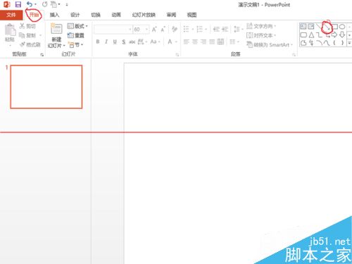 3、下一步需要画刻度,需要使用PPT的线段工具,如下图所示红圈部分,选择画图工具栏中的线条。