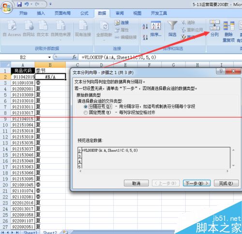 第一步,如果遇到VLOOKUP V了后出现错误值的情况,不要着急我们一步一步检查,因为原因有多种,但是我们从最常见的问题出发,我们一般会考虑是不是参考值的格式不一样,我们会利用表格中的分列,将格式统一。