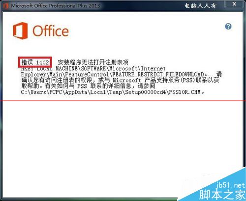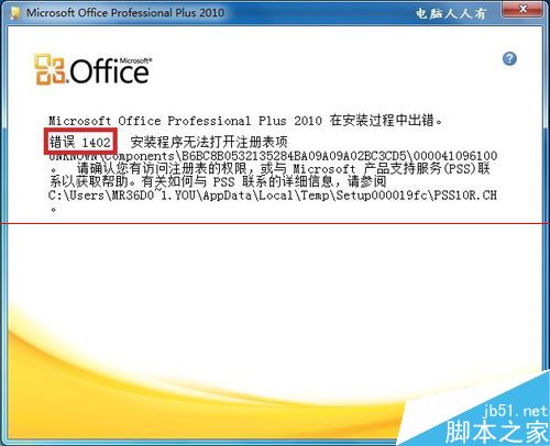 Office各个版本的安装过程中,几乎都会出现错误1402,一般这是电脑用户的权限不够所致。