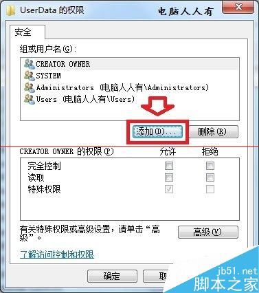10、以同样的方法添加Everyone(每个人)账户授权。