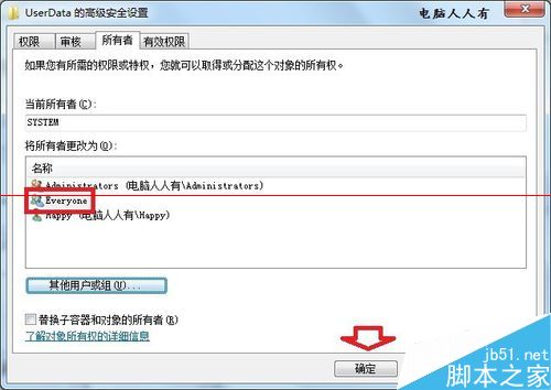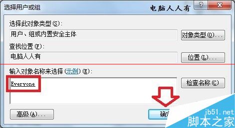 6、此时系统会自动输全Everyone(每个人)账户名称▶确定