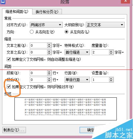 1、单倍行距又不一样的效果,这是我们的文档都设置了与网格对其的默认按钮,如下图所示