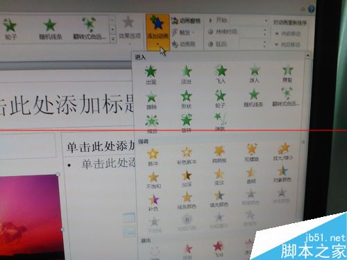 4、再选择“添加动画”,然后选择你需要的动画样式就可以了。动画添加完毕。