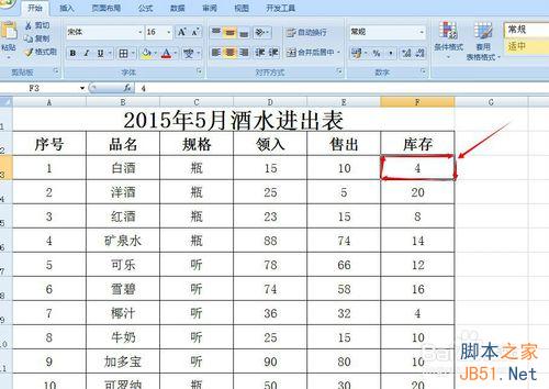 3、我们需要备注在库存4瓶这里,所以我们要先将这个单元格选中,如图所示;
