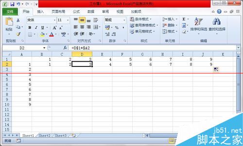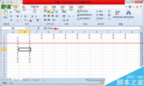 4、"=B$1*$A1",这个公式用到了混合引用,既有相对引用,又有绝对引用。