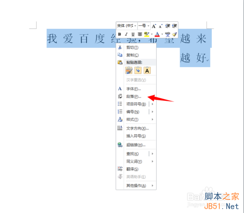 按下 ctrl+a 组合键将Word内容全选,然后右键点击Word,点击【段落】