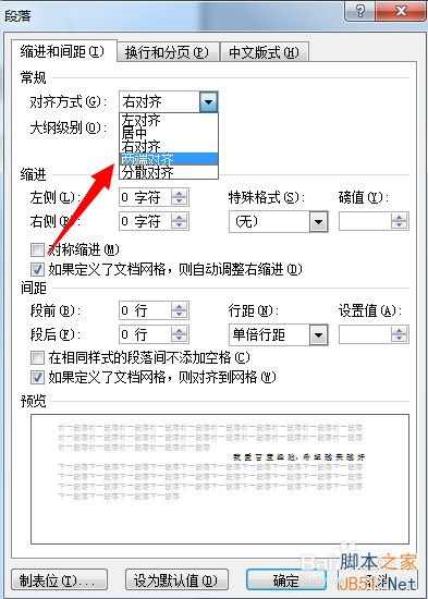 在“段落属性”对话框,进入缩减和间距界面,将对其方式设置为【两端对齐】