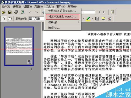 点击“菜单栏”中的“工具”选项中的“将文本发送到word”。