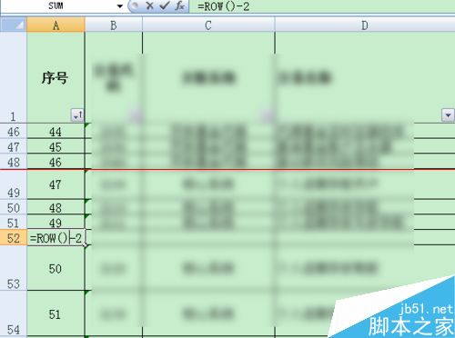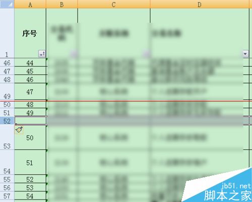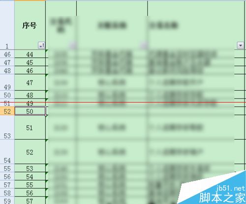 2、现在我们想在第50行前面新增一行,右键新增之后如下,为了保持序号连续,需要更改序号。