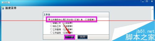 2、选择要添加到菜单的工作流的名字,点击‘下一步’按钮。