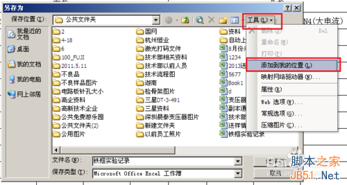 4、看到“另存为”工具栏右上角,点击“工具”的下拉箭头,选择“添加到我的位置”;