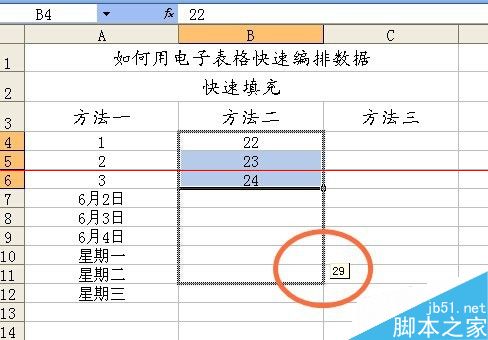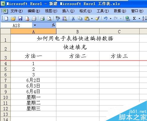 1、在数据量大,且需填充数据较规律的情况下,可以采用此方法。首先,先手动填充前三个数据。