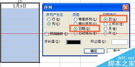 6、此时在“序列”设置框中,可进行如下设置,点击确定。