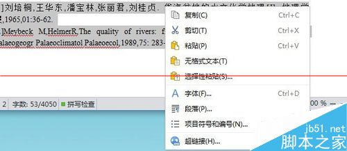 3、我这里只是添加了两个参考文献,做一个示范。你会看到参考文献显得太拥挤,不美观。下边选中文字,单击鼠标右键。