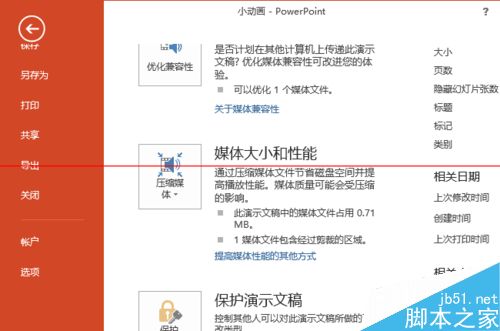 3、这时,会出现如下页面,选择左侧列表中的“信息”选项,然后单击“保护演示文稿”图标