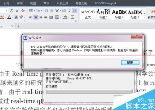 1、例如,我们在使用局域网打印机打印文档时,不知何故出现“WPS office 无法启动打印作业,请检查打印机是否开机并联机”,其实打印机也开机了并且也联机了。