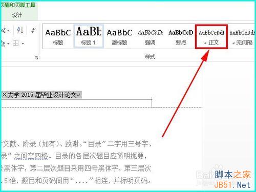 4、在文档样式中选择“正文”样式:单击“开始”选项后,我们可以在菜单栏右侧看到文档样式选项,此时我们需要选中“正文”样式其位置如下图1所示,“正文”样式选中后页眉线消失页眉内容移至左侧如下图2所示。