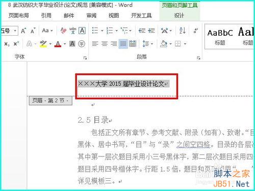2、用鼠标选中页眉内容:当文档进入页眉编辑状态后,我们用鼠标将页眉的内容选中,如下图红色框选中处所示。